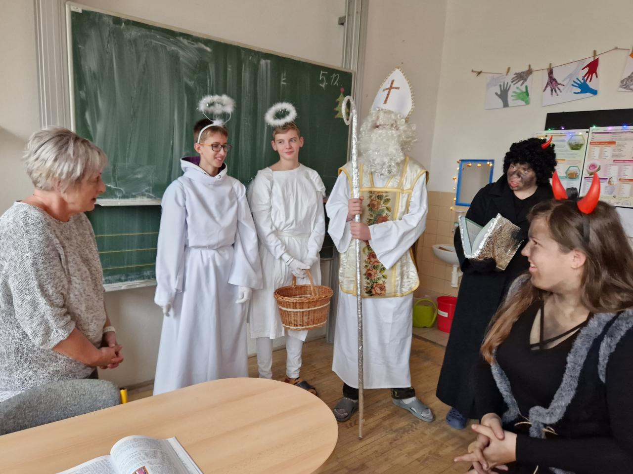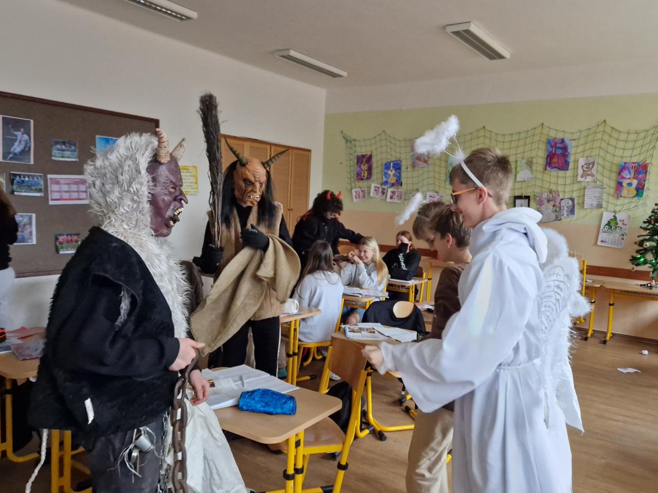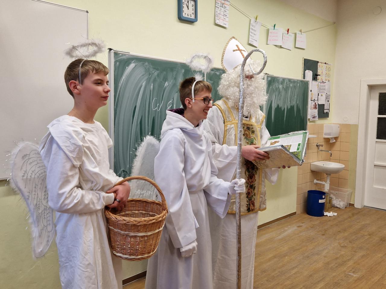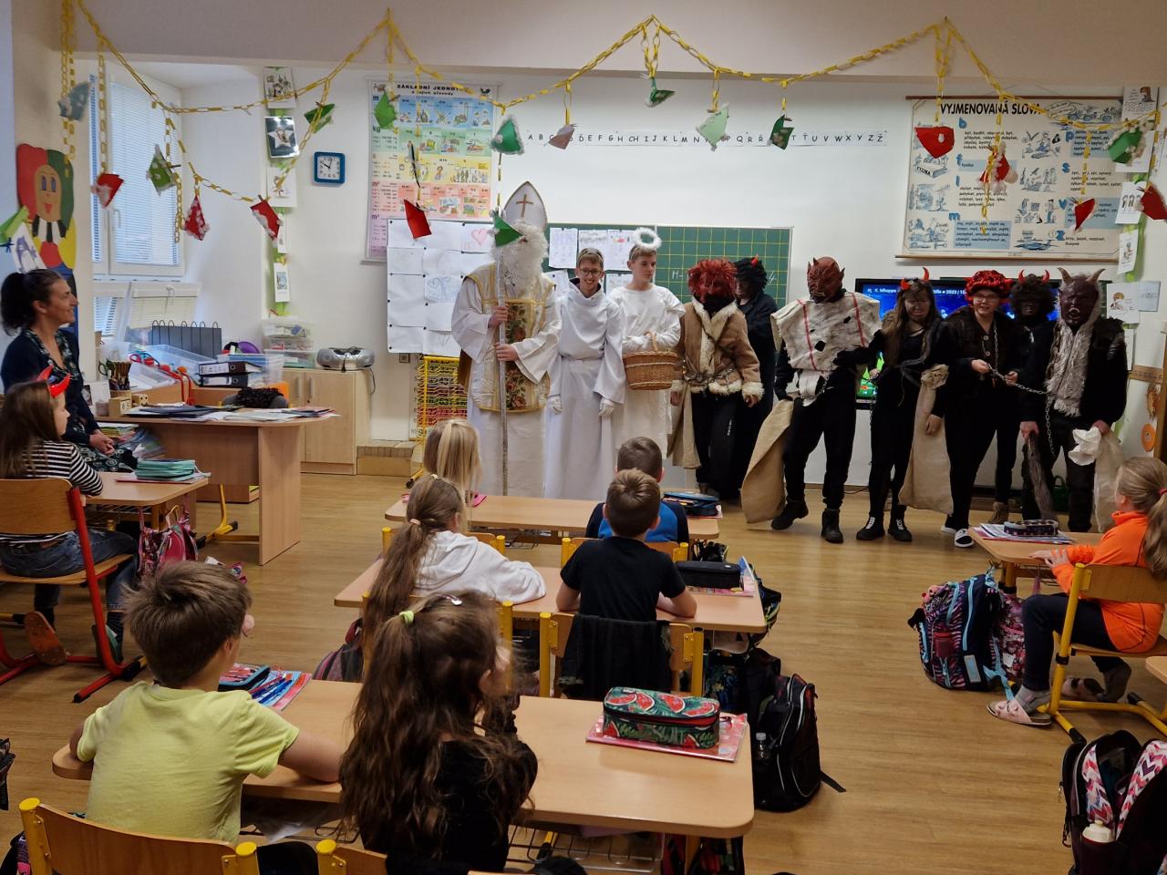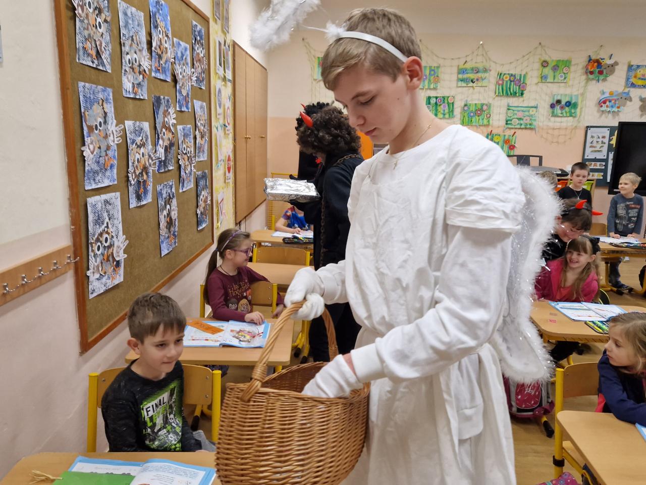 Mikuláš s anděly a čertovskou družinou dorazili i k nám do školy. Třídami prošli v pondělí 5. 12. Děti byly statečné a zasloužily si sladkou odměnu.