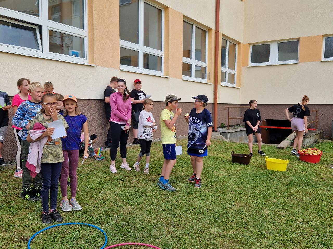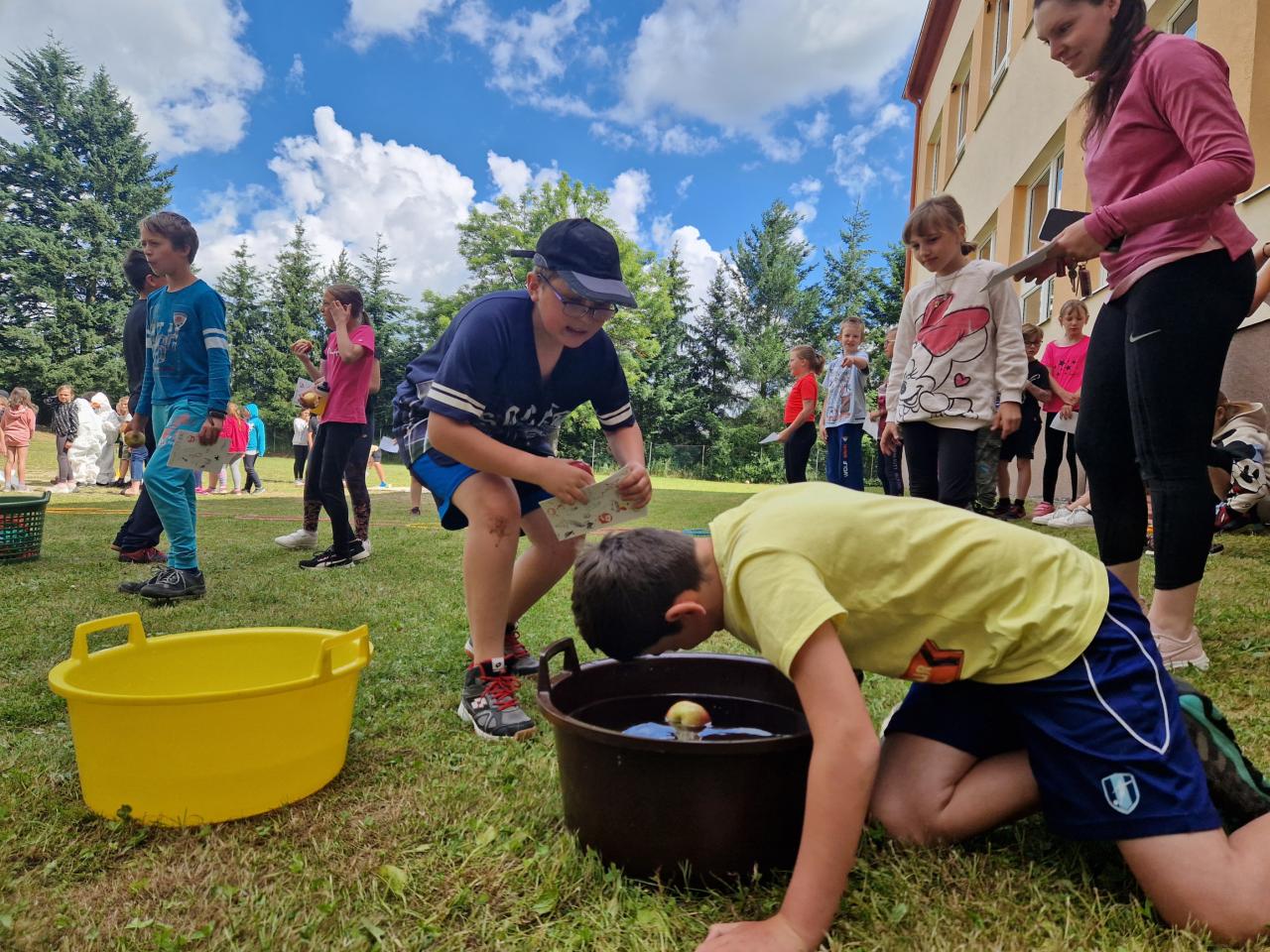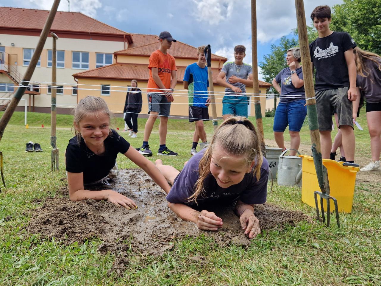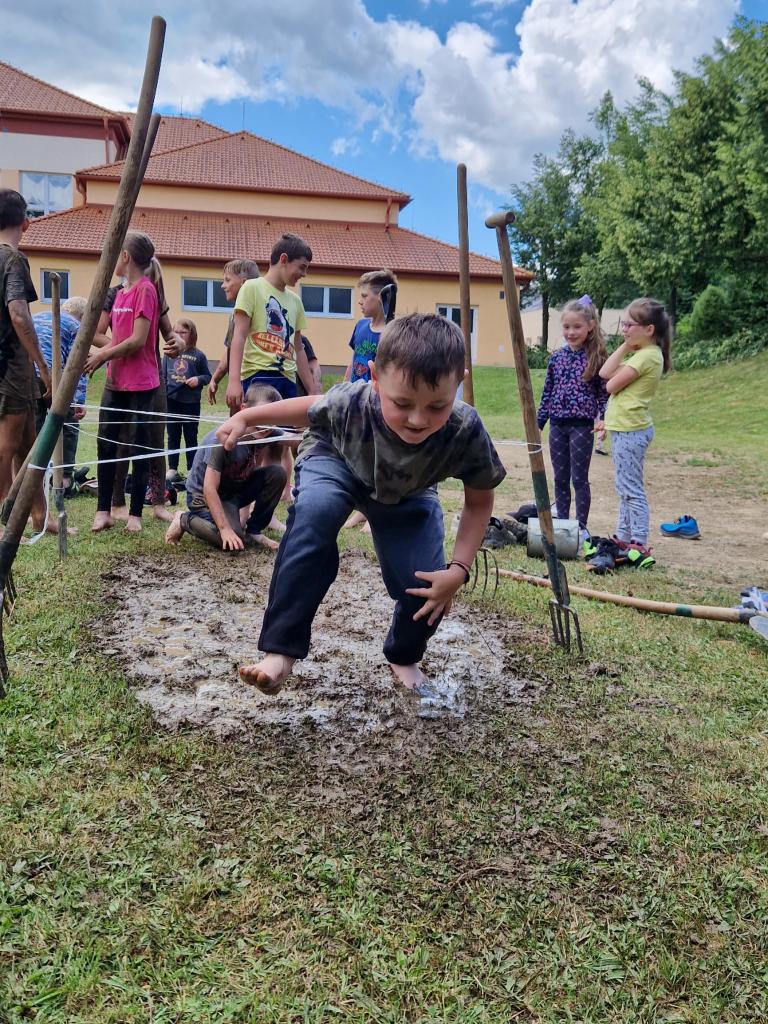 Poslední červnovou středu se děti měly možnost vyřádit na několika stanovištích v areálu školu. Vyzkoušely si například střelbu, hod míčkem, opičí dráhu, lezení v blátě či lovení jablka z vody ústy. Všichni si toto sportovní dopoledne užili!