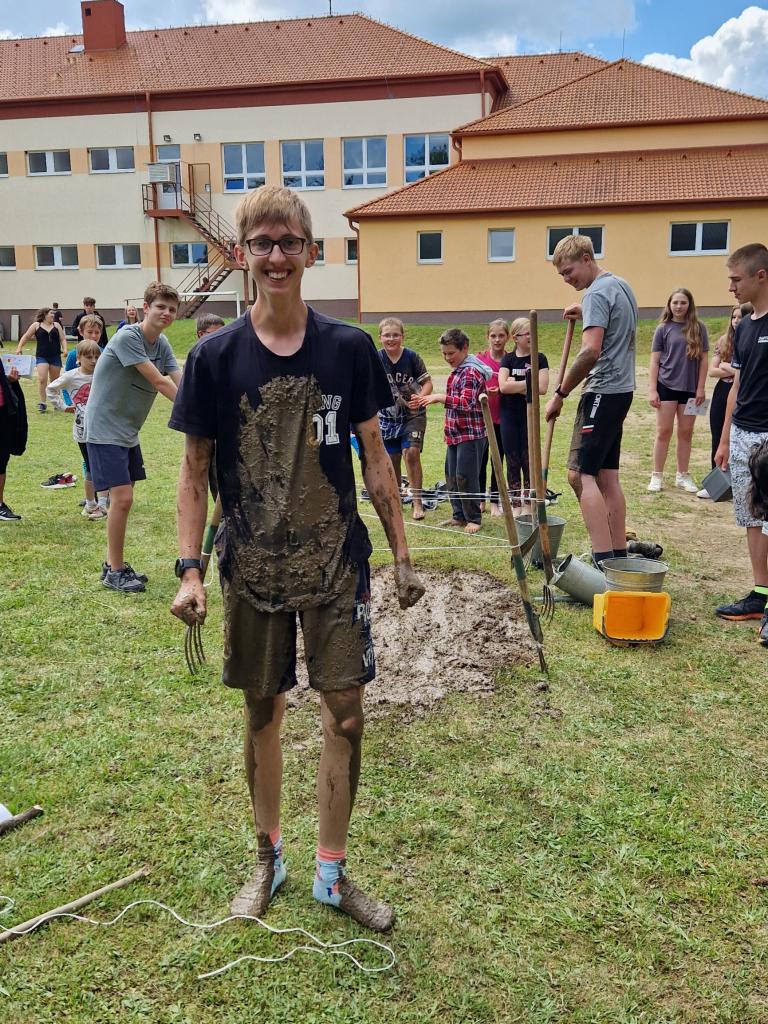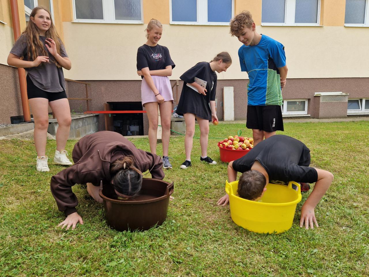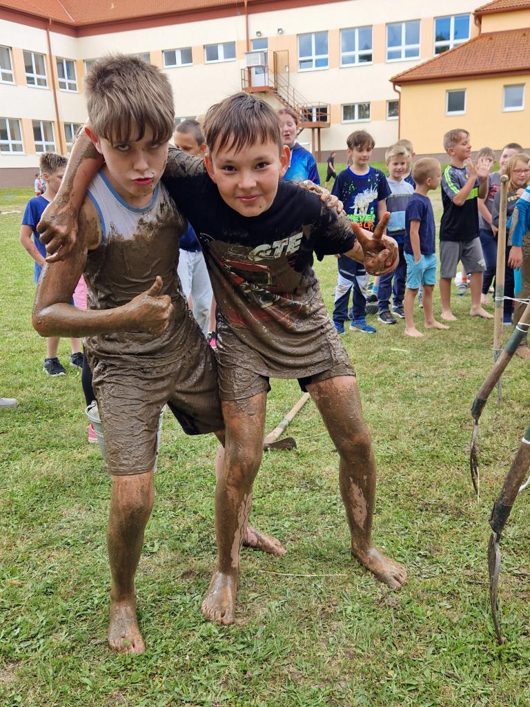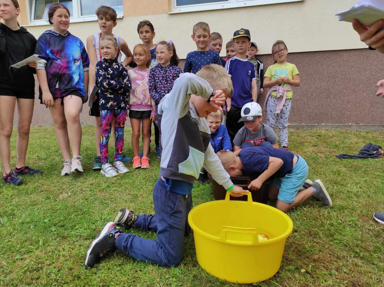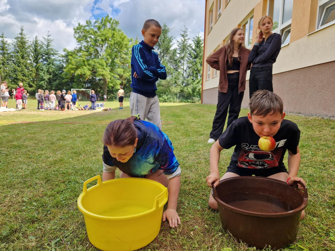 Poslední červnovou středu se děti měly možnost vyřádit na několika stanovištích v areálu školu. Vyzkoušely si například střelbu, hod míčkem, opičí dráhu, lezení v blátě či lovení jablka z vody ústy. Všichni si toto sportovní dopoledne užili!