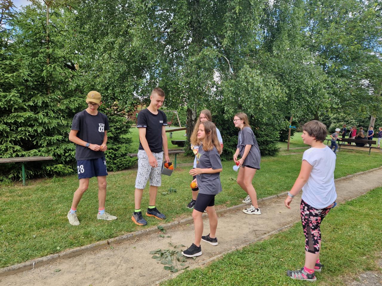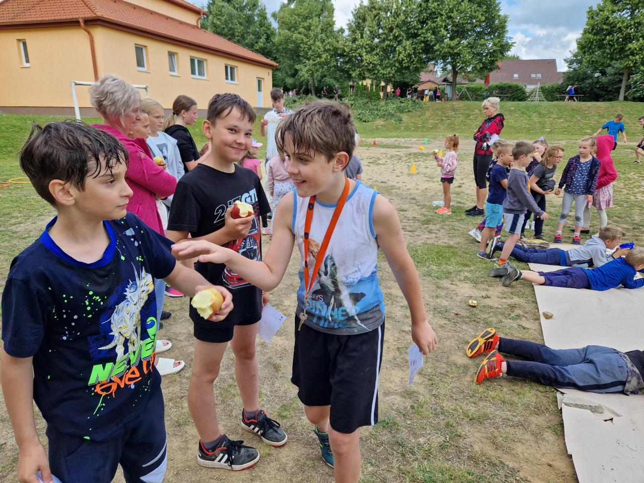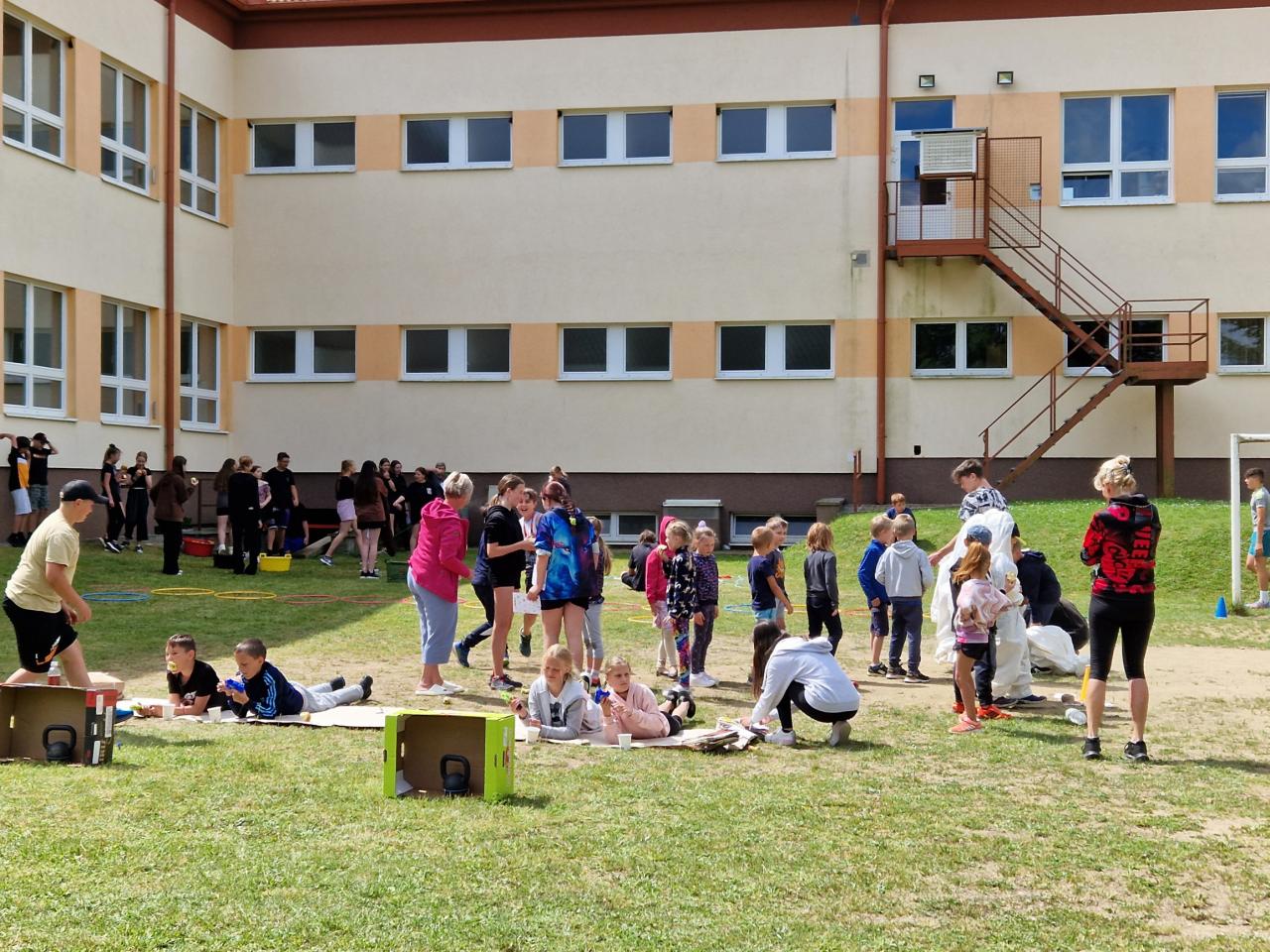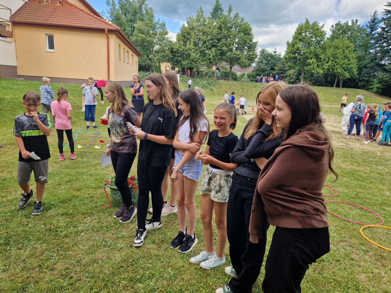 Poslední červnovou středu se děti měly možnost vyřádit na několika stanovištích v areálu školu. Vyzkoušely si například střelbu, hod míčkem, opičí dráhu, lezení v blátě či lovení jablka z vody ústy. Všichni si toto sportovní dopoledne užili!