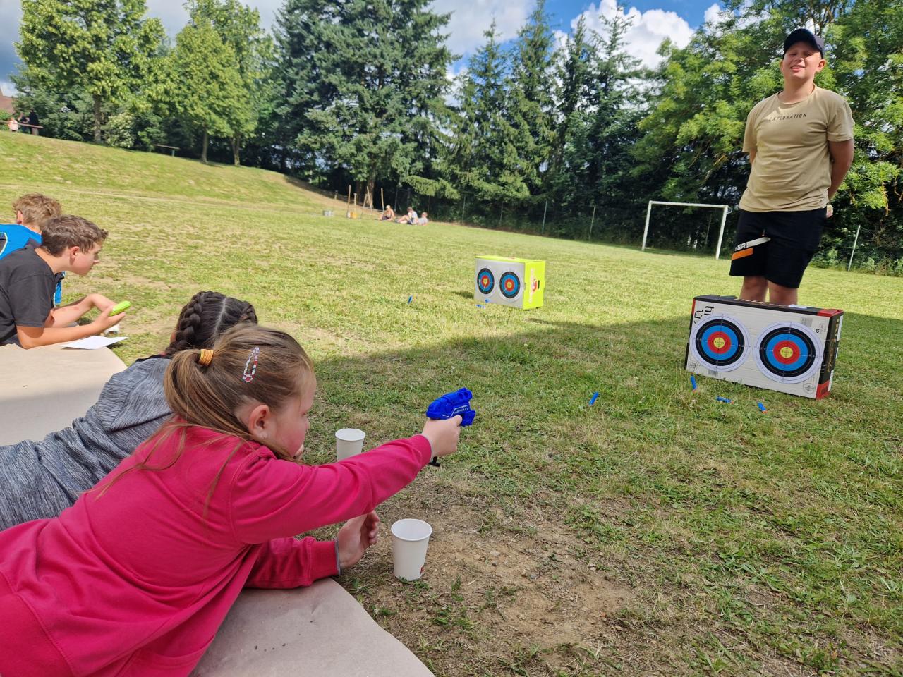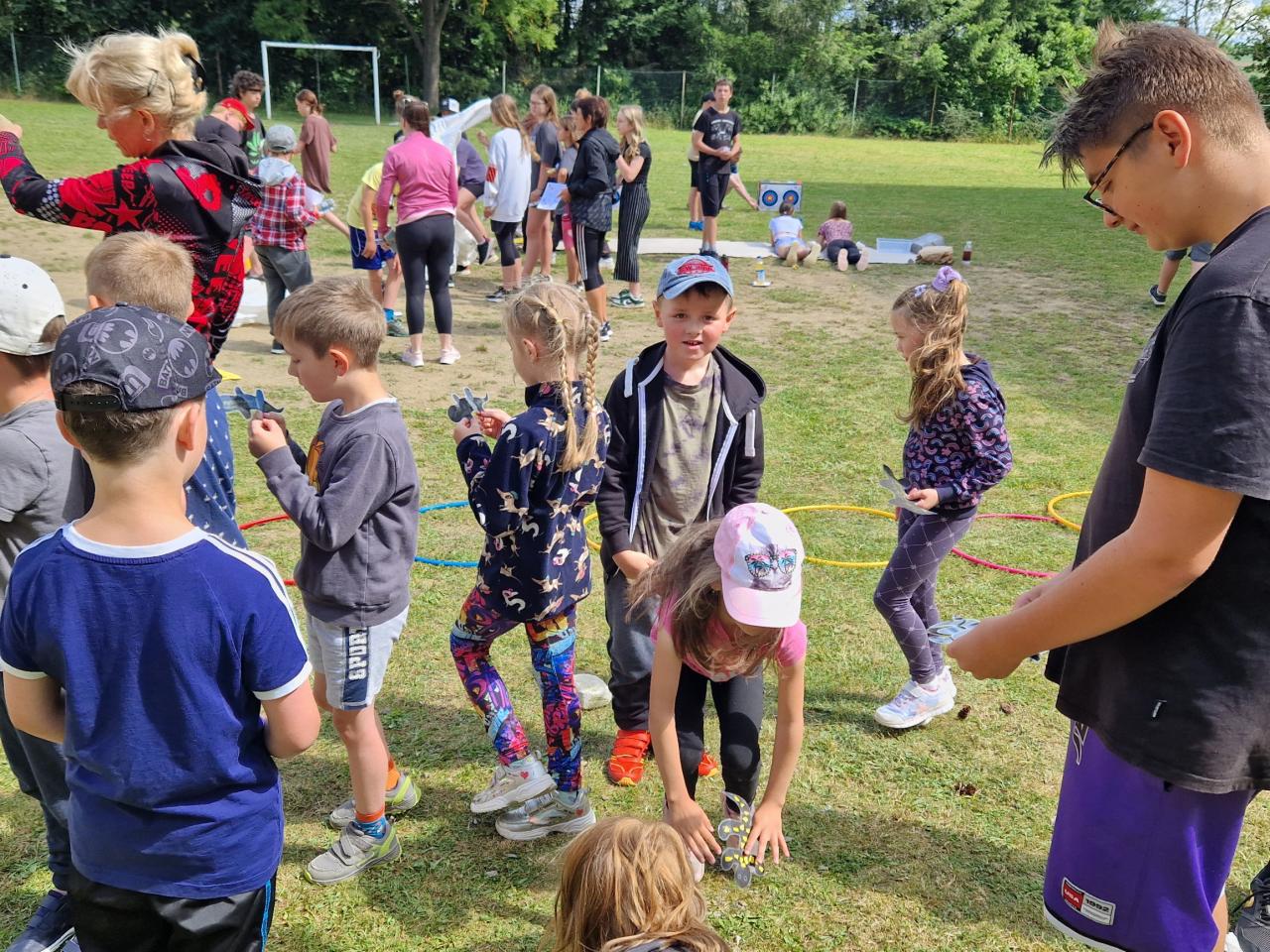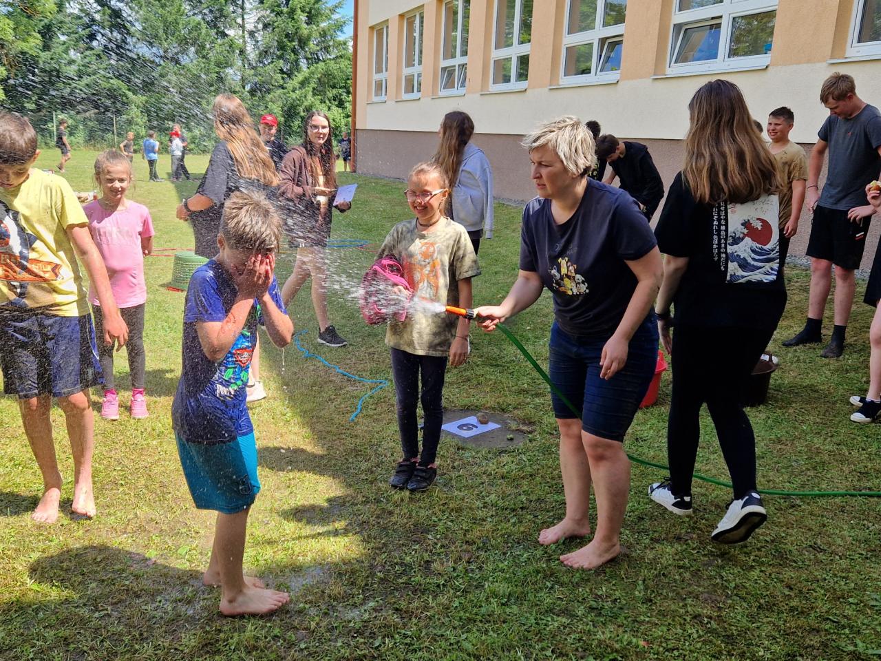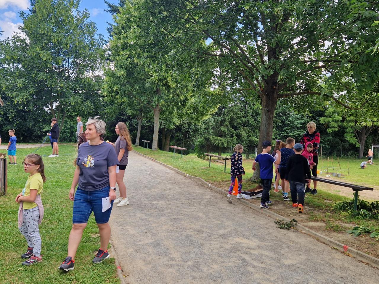 Poslední červnovou středu se děti měly možnost vyřádit na několika stanovištích v areálu školu. Vyzkoušely si například střelbu, hod míčkem, opičí dráhu, lezení v blátě či lovení jablka z vody ústy. Všichni si toto sportovní dopoledne užili!